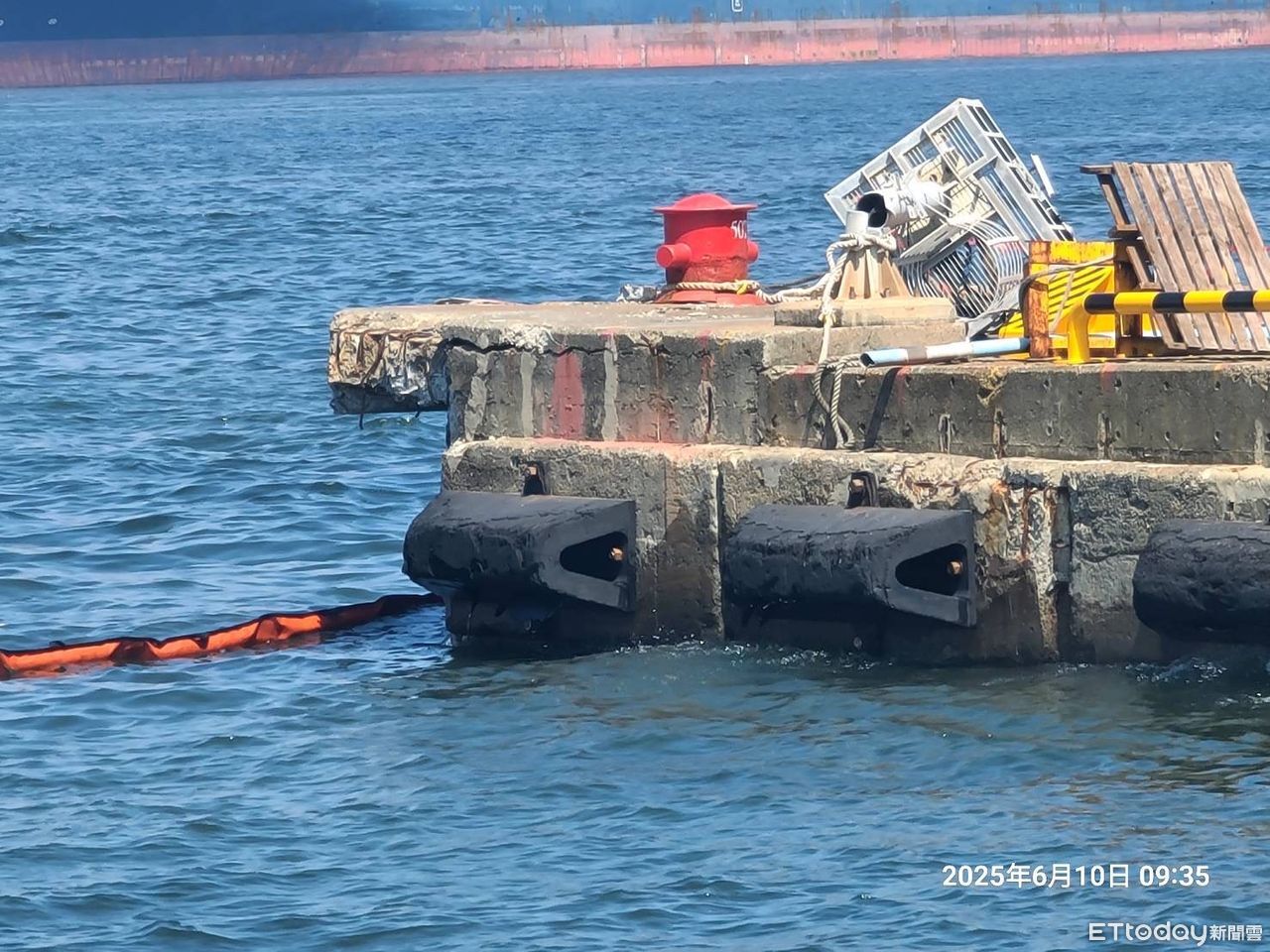▲89號碼頭岸壁水泥局部受損。(圖/記者賴文萱翻攝)