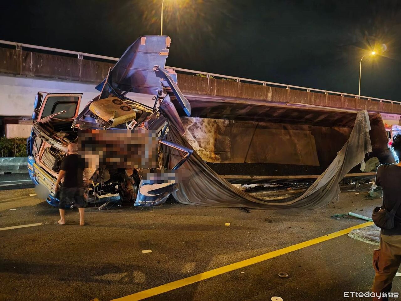▲▼國1內湖段嚴重車禍,駕駛宣告不治。(圖/記者張君豪翻攝)