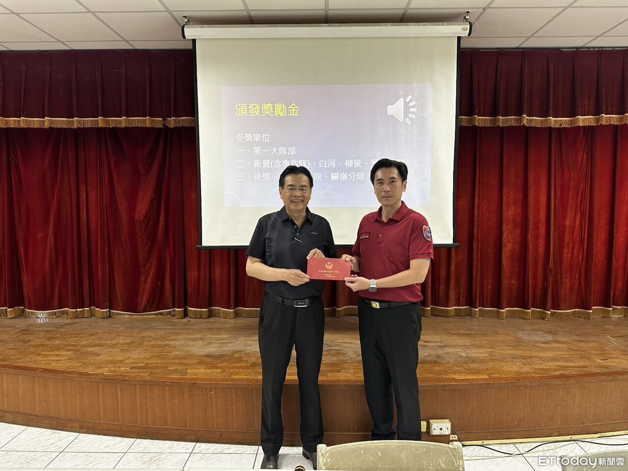 ▲台南消防局第一大隊獲消友會第一辦事處頒發慰問金與工作獎勵金,表彰英勇救災表現。(記者林東良翻攝)
