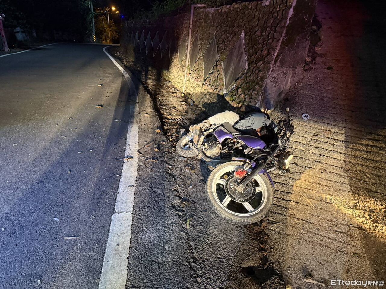 和平警分局環山派出所昨日晚間20時許接獲民眾報案,指在部落公墓旁有一部機車摔倒在路旁,騎士卡在路旁移動也不動,員警接獲報案後立即前往處理,現場一名年約25歲亞姓外籍移工,騎乘一部未懸掛車牌重機車,自摔倒臥路旁意識不清,頭部受創,立即通報由消防分隊送梨山衛生所救治,經衛生所醫師評估傷勢後,由消防局救護車轉送接駁傷患轉送至東勢農民醫院救治。