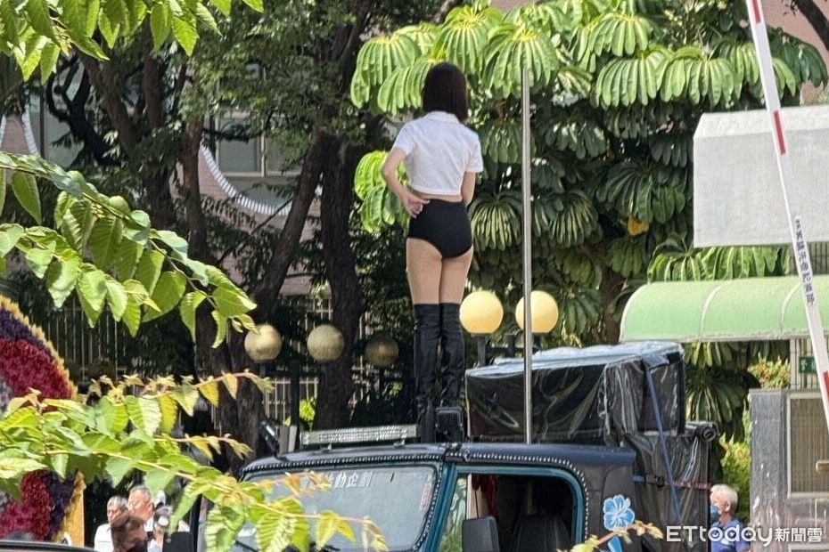 這間國中校門口上午出現2名辣妹站在吉普車上大跳鋼管,隨著音樂動感跳舞,讓出席畢業典禮的老師、家長和學生們當場傻眼,員警獲報到場,以妨害安寧之名要求離開。