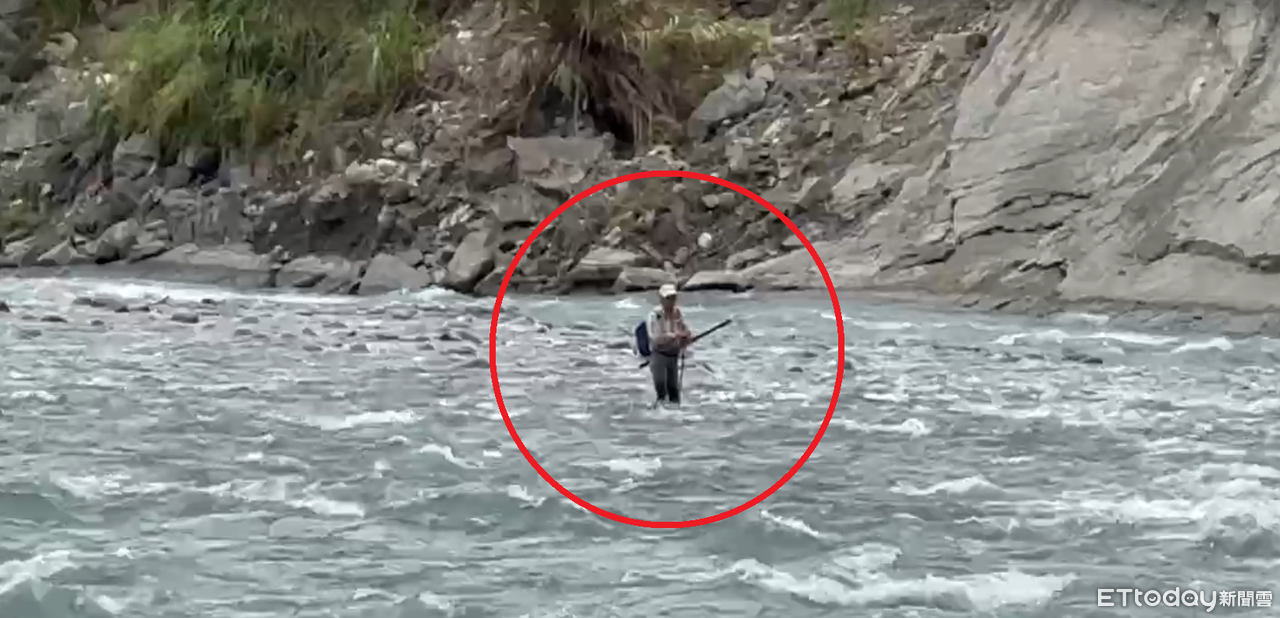▲台中男子受困東勢沙洲2小時,驚慌站立溪中生死一瞬。(圖/民眾提供,下同)