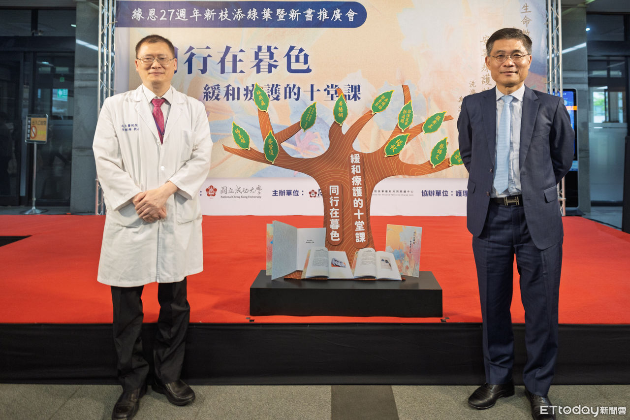 走過27年安寧療護之路,成大醫院安寧緩和共同照護中心12日舉辦「緣恩27週年新枝添綠葉暨新書推廣會」,發表新書《同行在暮色-緩和療護的十堂課》,以書傳情、感念醫護與家屬的同行時光,成大校長沈孟儒、成大醫院院長李經維及眾多醫療人員、善心人士齊聚一堂,透過緣恩樹添葉儀式,共同見證生命尊嚴的延續與傳承。
