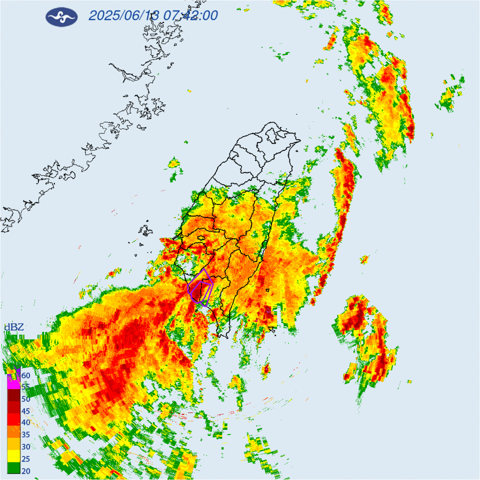 受到西南風影響,氣象署針對「台南市、高雄市、屏東縣」發布大雷雨即時訊息,持續時間至09時15分止。另外,由於西南風增強,易有短延時強降雨,花蓮縣已有豪雨發生,今(13)日台南市、高雄市、屏東縣及台東縣(含蘭嶼、綠島)有局部大雨或豪雨,彰化至嘉義、宜蘭及花蓮地區有局部大雨發生的機率,請注意雷擊及強陣風,山區請慎防坍方、落石及土石流,低窪地區請慎防積水。