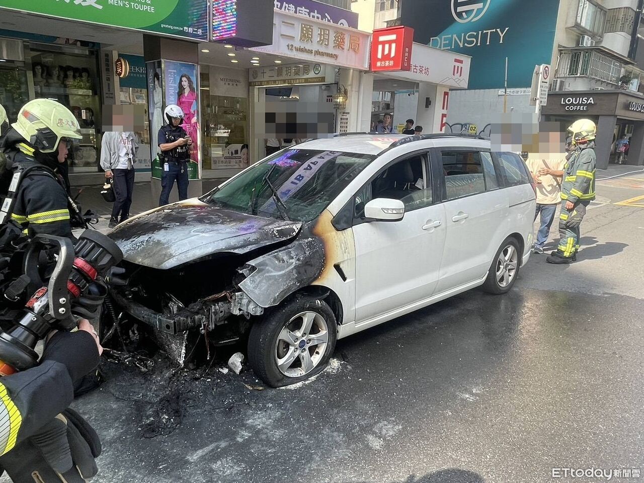 台北市信義區忠孝東路、統一時代百貨對面今(15日)下午3時許,一輛停放在路邊的白色自小客,引擎位置不明原因突然起火燃燒,濃煙四散,警消獲報隨即趕赴現場撲滅,所幸無人傷亡,詳細起火原因還有待釐清。