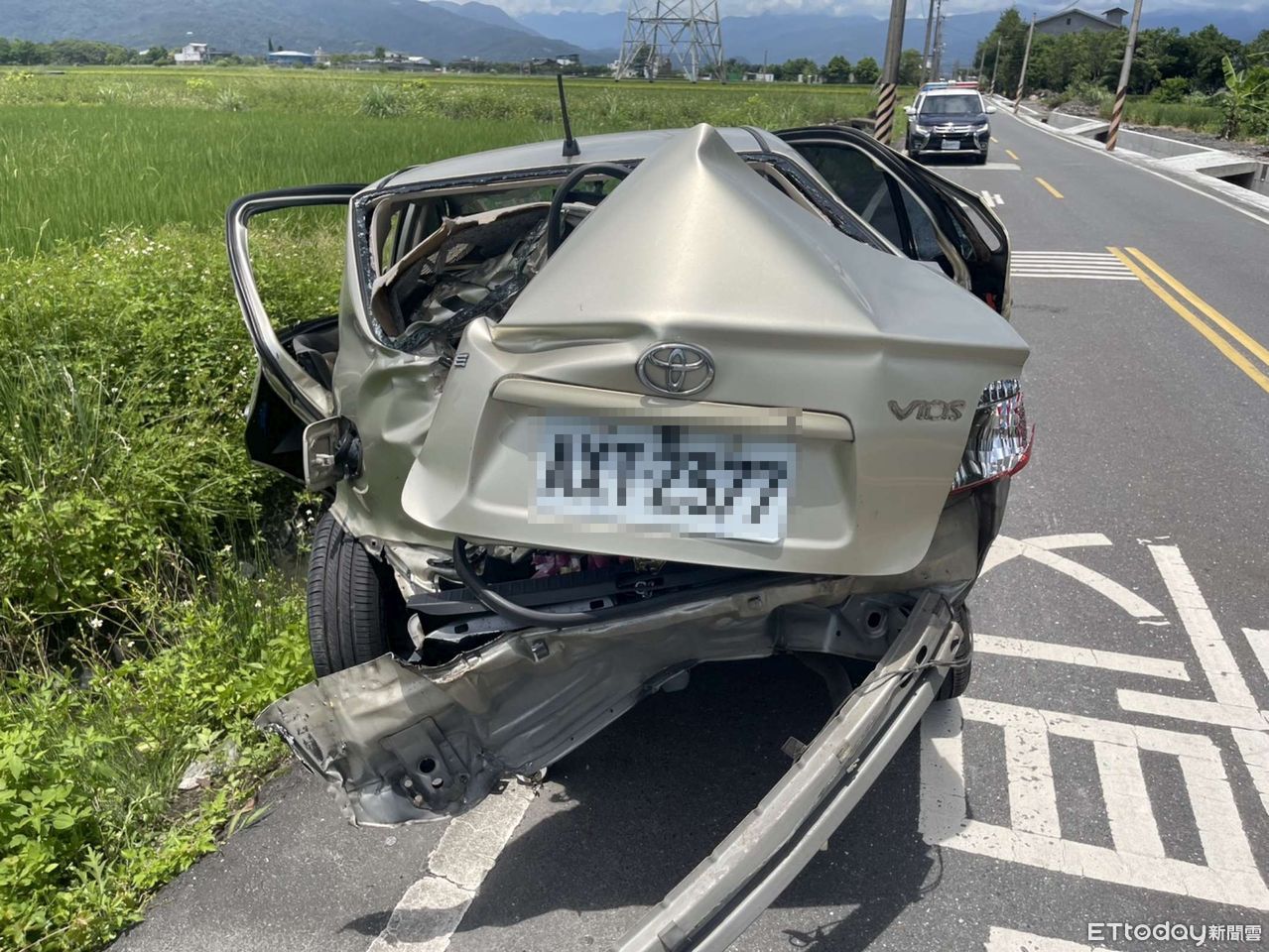 ▲宜蘭縣三星鄉大德路二段與尚健三路二段口發生車禍,其中一輛自小客被撞成一團鐵球 。(圖/記者游芳男翻攝)