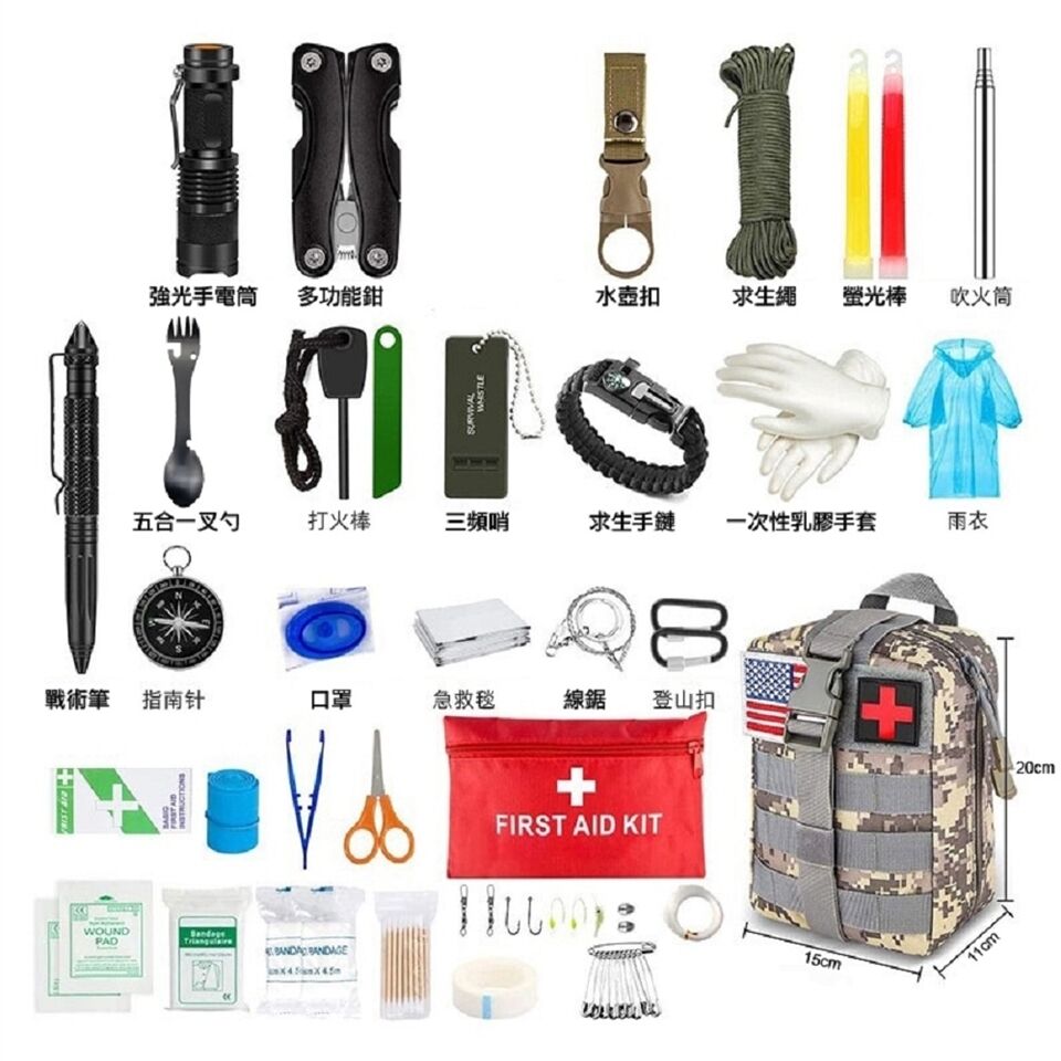 momo購物網站上如多功能照明、防水收納、簡易醫療用品等,防災相關用品近期週成長高達178%,最受青睞的「22合1完全款防災包」強調包含戶外淨水過濾器、護目鏡、救生繩、防災收音機等,符合現代防災對多功能性的需求。