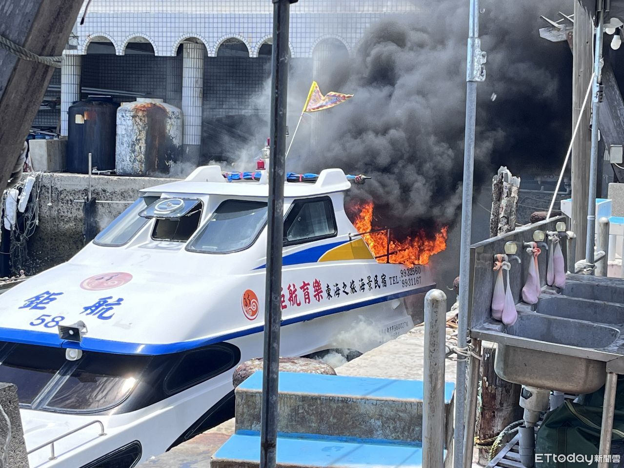 ▲ 澎湖縣白沙鄉鳥嶼碼頭,今日一艘停泊中的遊艇發生火警 。(圖/記者陳洋翻攝)