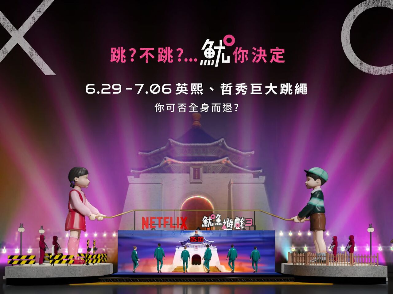 台北市政府觀光傳播局今(20日)表示,Netflix《魷魚遊戲》第3季即將上線,這次選定台北市作為宣傳城市,本活動在台北市政府觀光傳播局的協助下舉辦,劇中兩大經典角色「英熙」與「哲秀」的高達7公尺巨型人偶,將在6月29日至7月6日現身中正紀念堂兩廳院廣場,觀傳局邀請所有劇迷及遊客來台北拍照打卡,順遊周邊好吃好玩的景點跟餐廳,開啟一場專屬自己的夏日小旅行。