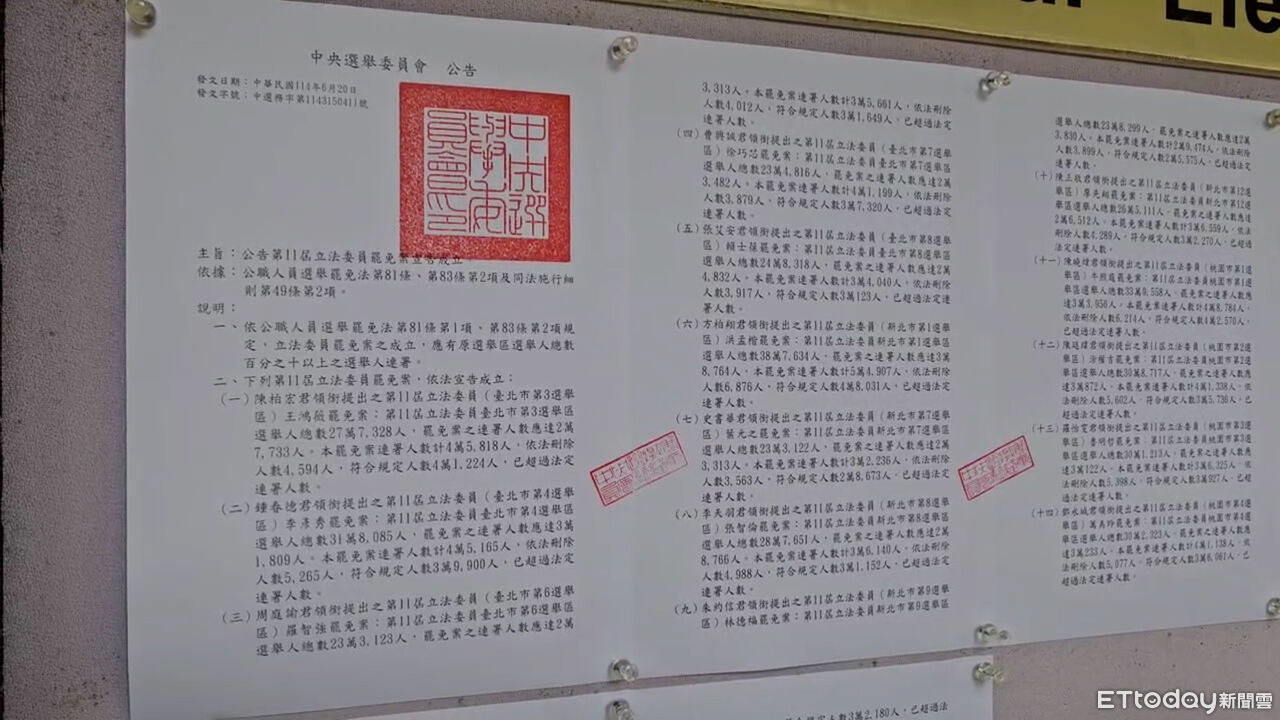 ▲中選會公佈罷免案。(圖/記者陳煥丞攝)