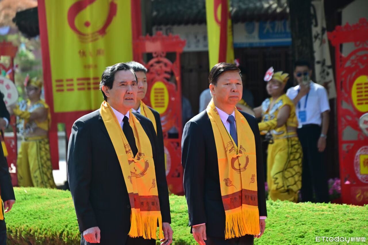 ▲馬英九在宋濤的陪同下,出席「2025年公祭中華人文始祖伏羲大典」。(圖/記者陳冠宇攝)