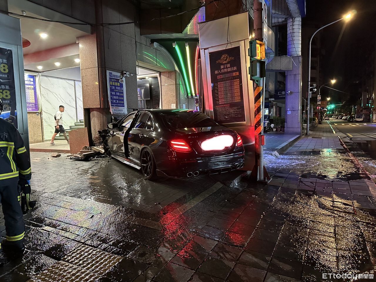 ▲27歲許姓男子駕駛賓士撞路邊樑柱。(圖/記者張君豪翻攝,下同)