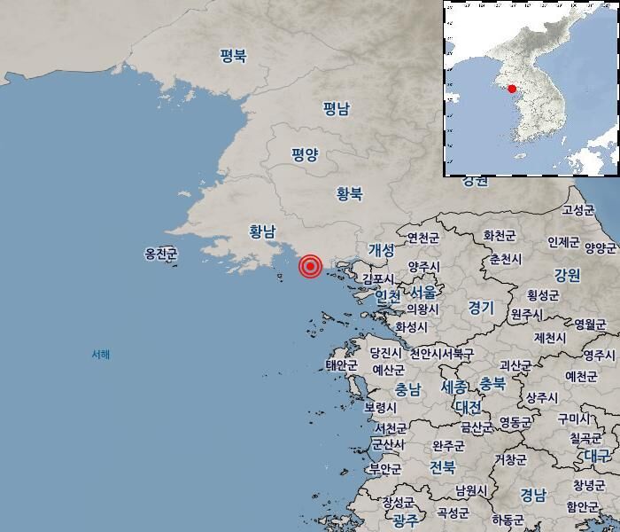 ▲南北韓邊境海域22日中午發生地震。(圖/大韓民國氣象廳)