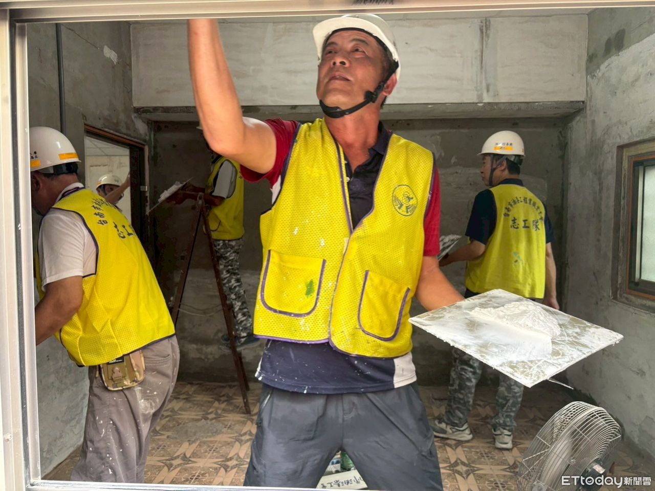 ▲台南做工行善團22日深入南區、麻豆區、鹽水區協助弱勢家庭修繕屋宅,烈日下仍堅守現場作業。(記者林東良翻攝,下同)