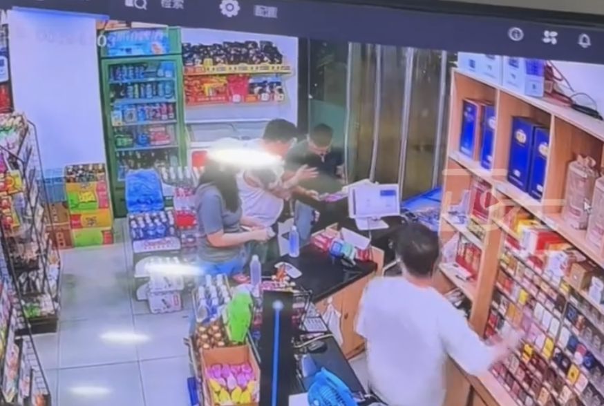 從監視畫面中可以看到,彭先生走進超市,原本站在櫃檯旁的陌生男子突然伸手,朝著彭先生的胸部捏了一下,嚇得彭先生趕緊揮手阻擋,並喝斥對方,「你摸什麼?」不料,對方並沒有收手,又將手伸向彭先生的胸部,兩人也爆發肢體衝突。