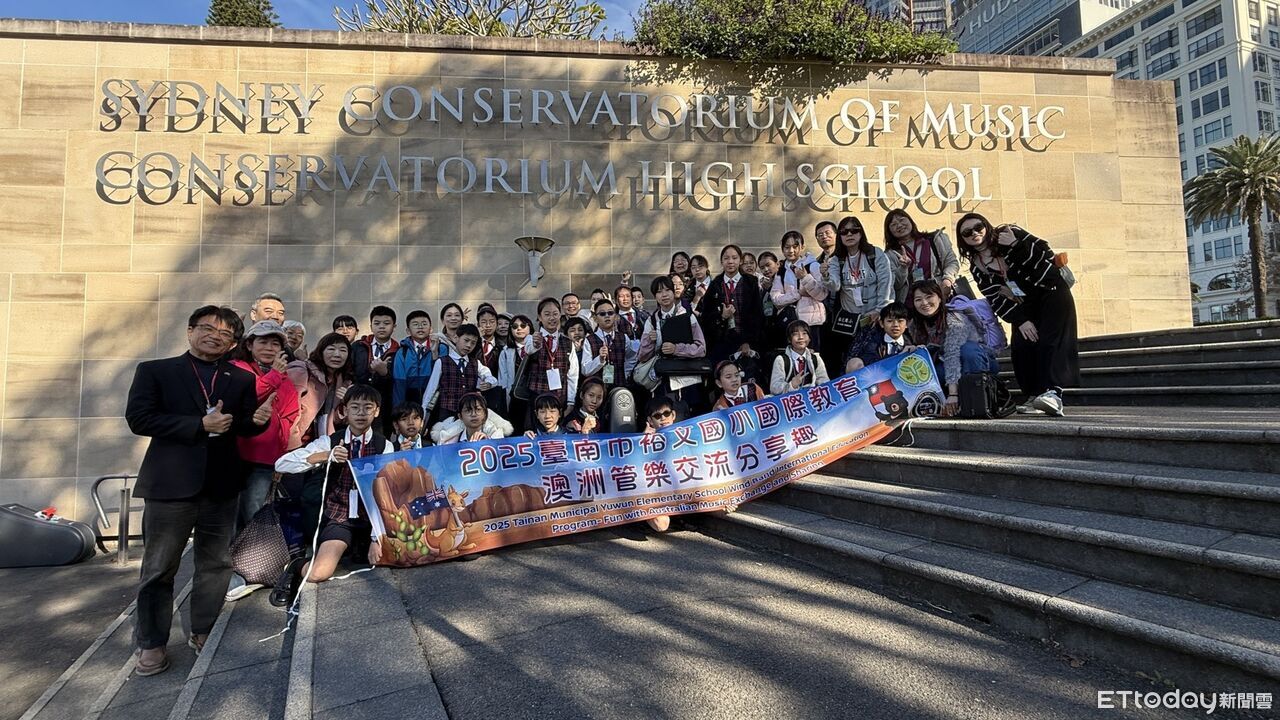 ▲台南市裕文國小管樂團赴澳參賽,勇奪金賞殊榮,孩子與師長合影展現榮耀。(記者林東良翻攝,下同)