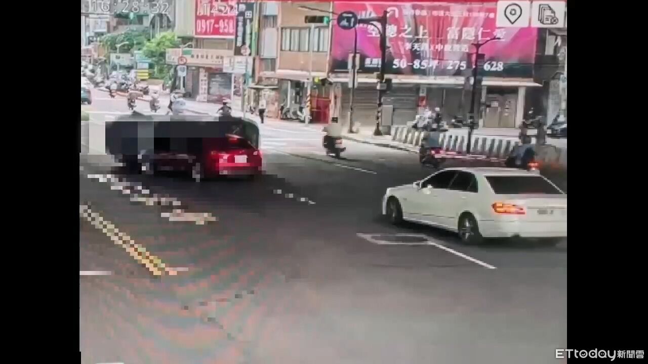 ▲白色自小客車駕駛疑因未注意後方來車、轉彎擦撞後車翻車。(圖/記者張君豪翻攝,下同)