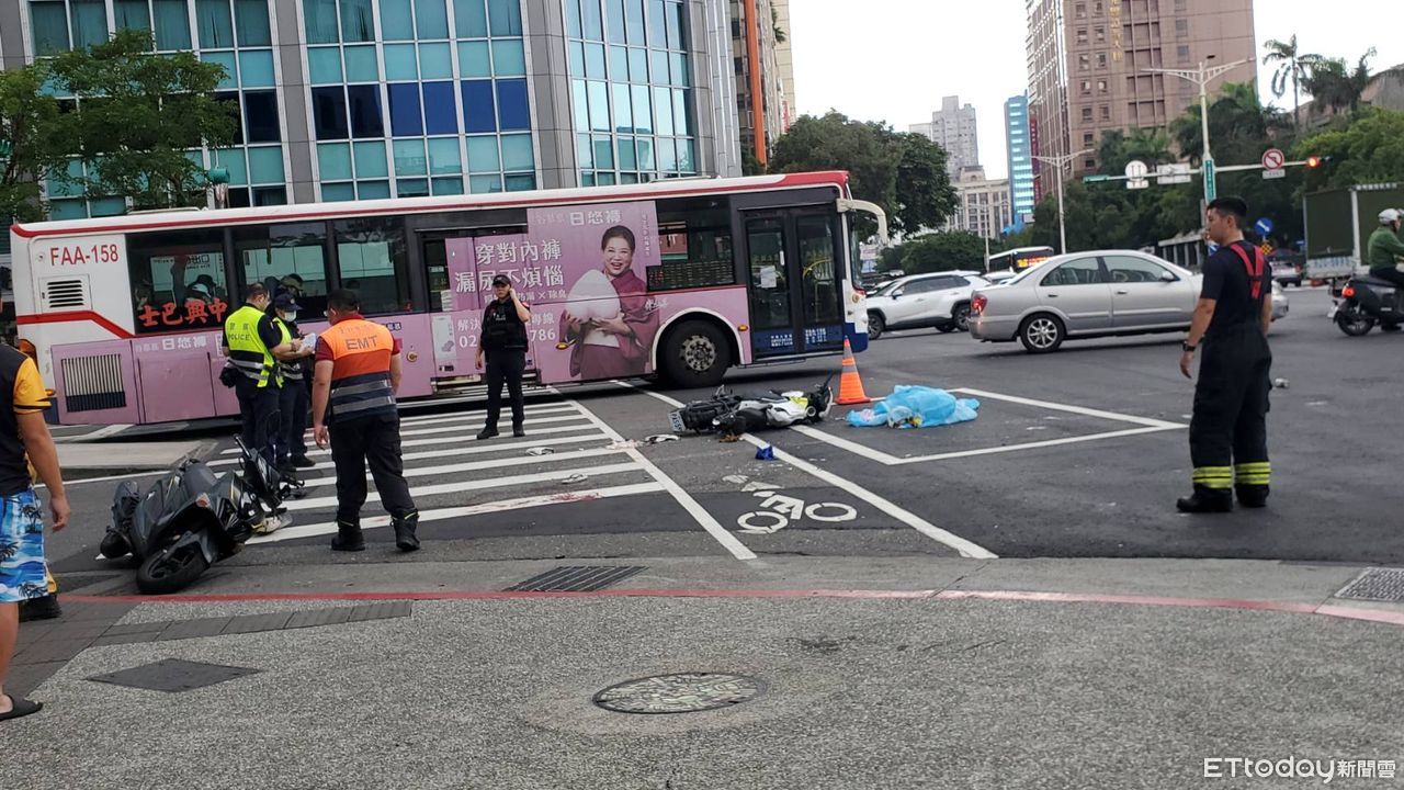 ▲北市吊車右轉時衝撞3輛機車,造成1死2傷。(圖/記者黃彥傑攝)