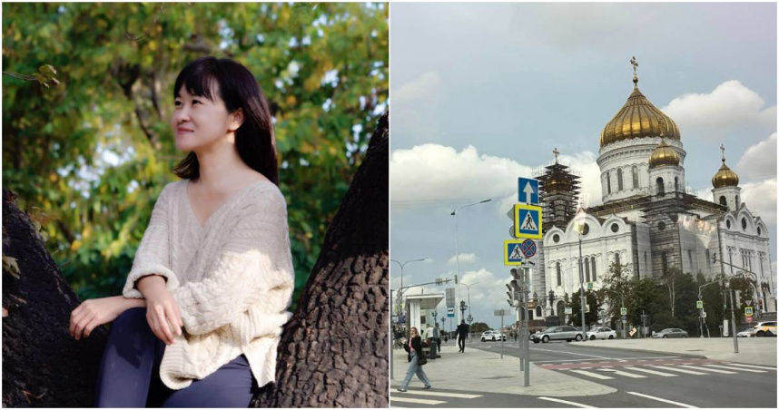 ▲作家黃大米近日前往俄羅斯旅遊。(合成圖/翻攝自Facebook/黃大米)