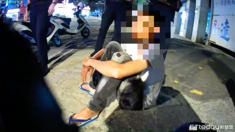 ▼倪男坐在地上接受盤查 。(圖/記者陳以昇翻攝)