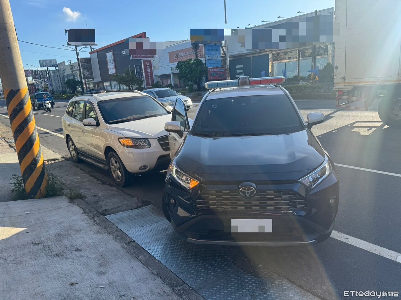 警方鳴笛示意靠邊停車,不料駕駛阮姓男子(約23歲)與車內4名男性乘客竟突然棄車逃逸,導致車輛繼續往前滑行,擦撞巡邏車右側車身,造成警車右側副駕駛座及後方乘客車門凹損。