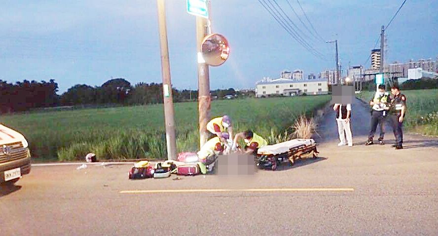 ▲桃園市18日晚間發生機車疑超車不當撞電線桿事故,騎士與後座乘客2人重傷不治。