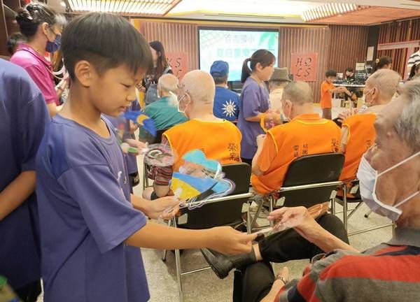 桃園市大溪區百吉國小師生及家長40人,27日前往桃園榮家,帶來清新活力的非洲鼓演奏、青春洋溢的動感舞蹈及溫馨傳情大合唱,並將精心彩繪的「小暑涼風扇」分贈現場長輩,老少共融同樂,讓孩子們學習關懷長輩,促進跨世代間交流與傳承。