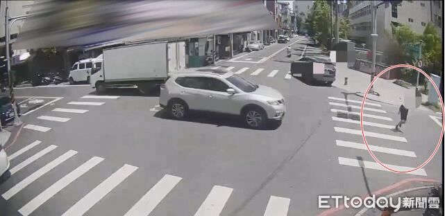 ▲一名學童(紅圈處)在宜蘭市復興路與文化路口疑跑步闖紅燈過馬路,差點遭撞。(圖/記者游芳男翻攝,下同)