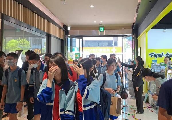 ▲統領廣場以拉炮禮、擊掌、加碼限時優惠等專寵學生迎賓儀式,慶學生放暑假。(圖/記者楊淑媛攝)