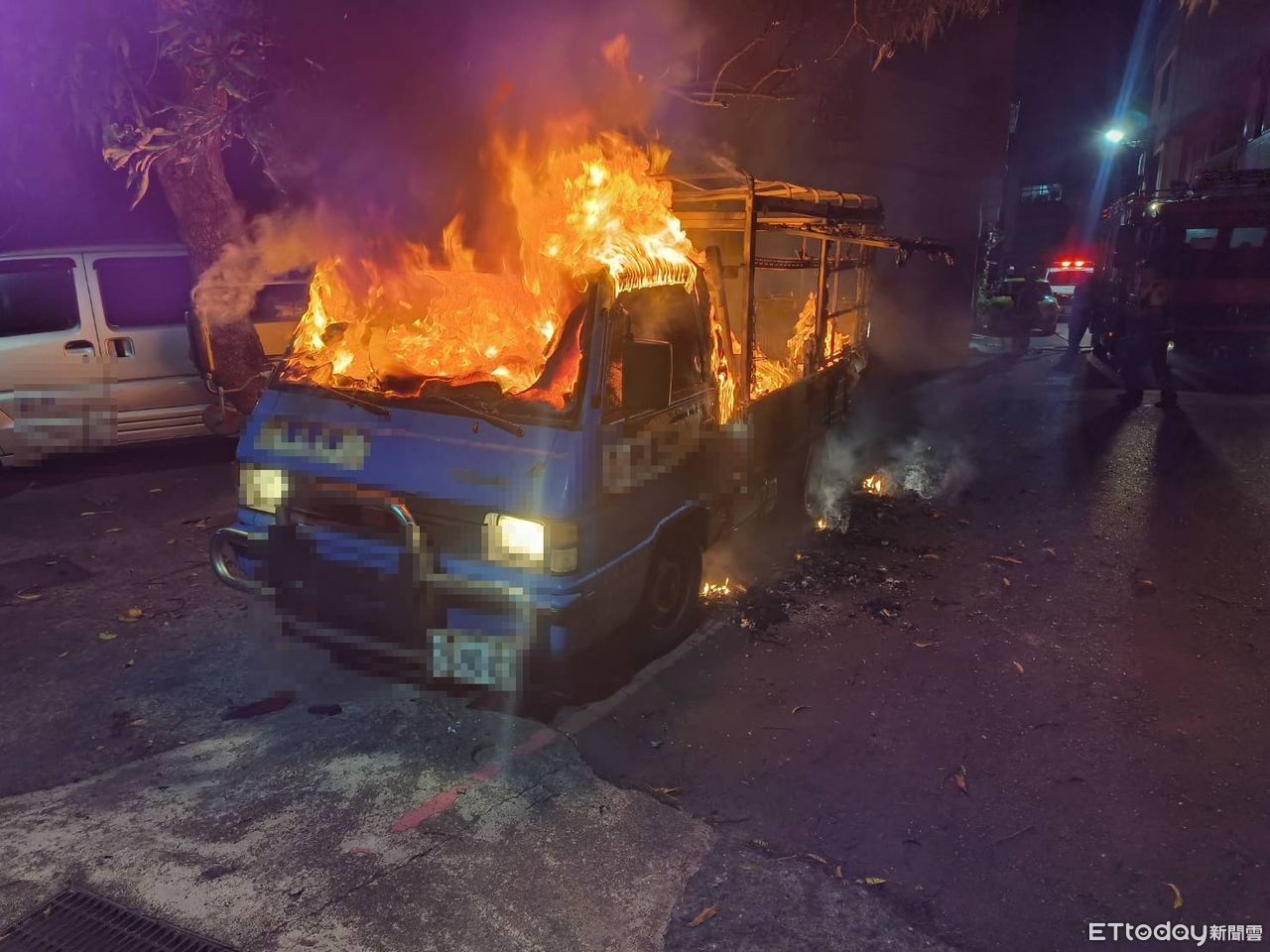 高雄市楠梓區壽民路公園旁今(5)日凌晨驚傳火警,一輛停放路邊的藍色小貨車突發自燃冒出火舌,車斗內滿載的芒果瞬間付之一炬,連車頭也遭燒毀。所幸火勢迅速撲滅,未造成人員傷亡。初步調查顯示,可能因催熟芒果引發熱源導致火災,詳細原因仍待釐清。