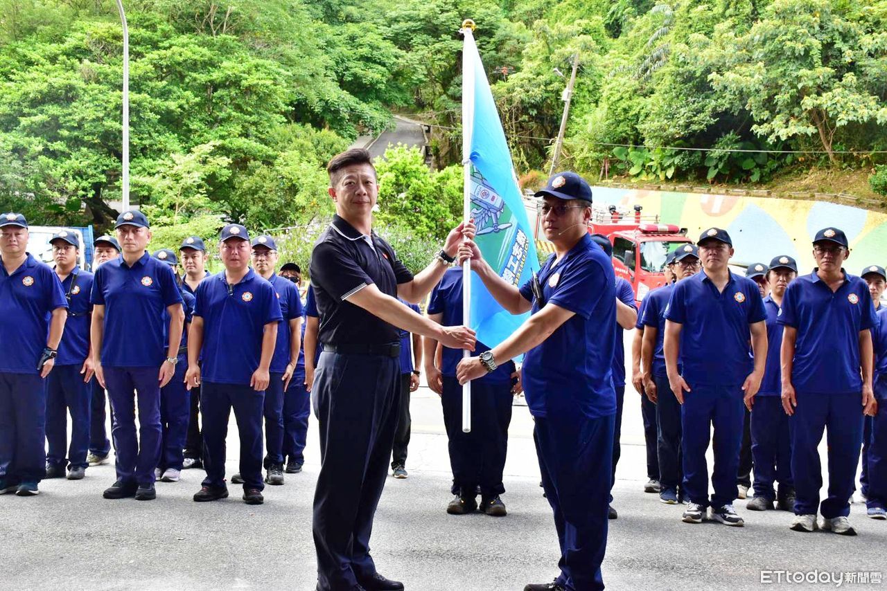 ▲基隆消防無人機志工隊成軍,由消防局長游家懿(左)主持授旗儀式。(圖/記者郭世賢翻攝,下同)