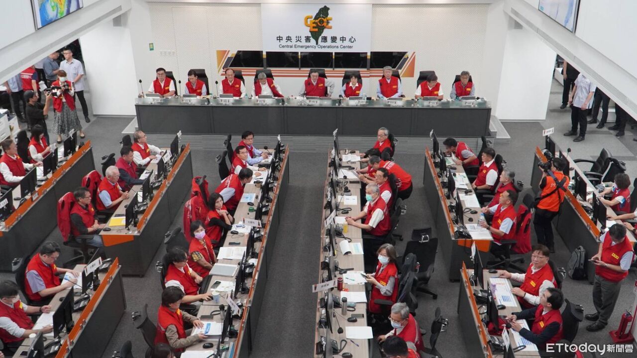 ▼行政院長卓榮泰、經濟部長郭智輝、內政部長劉世芳等,丹娜絲颱風中央災害應變中心。(圖/記者呂佳賢攝)
