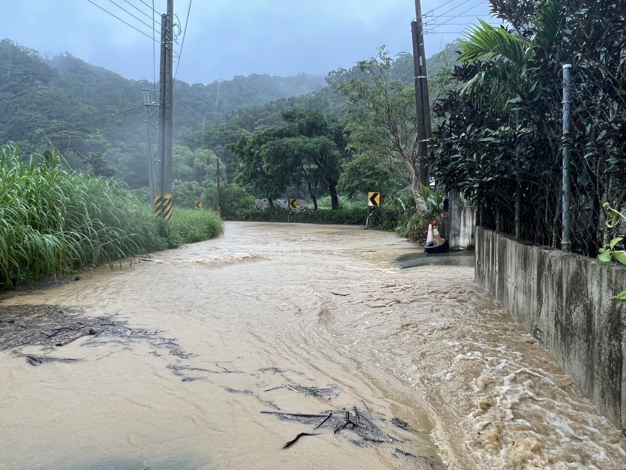 中央氣象署針對20縣市發布豪大雨特報,今(6)日至明(7日)上午台東縣、屏東縣地區及高雄市山區有局部豪雨或大豪雨,屏東縣受「丹娜絲」颱風影響,牡丹鄉東源村道路被雨水淹沒的現場畫面也曝光。