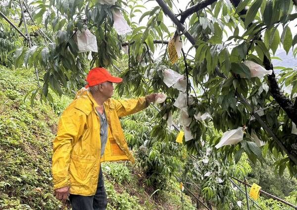 ▲復興區水蜜桃正值果實發育後期至採收期,果農加強枝條固。(圖/農業局提供)