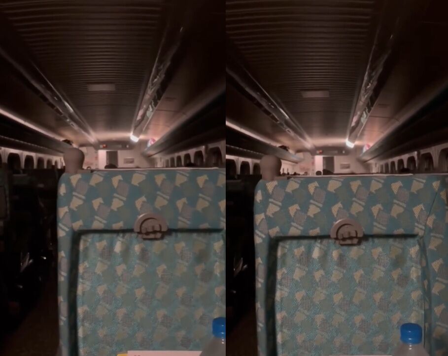 不少乘客在6日深夜、7日凌晨PO出畫面,只見高鐵333車次、295車次列車均在行經嘉義、台南一帶時,突然在路中停駛,車廂陷入黑暗,強勁風雨也導致車廂不斷晃動,影片中更能聽到劇烈風雨聲,乘客也紛紛驚呼「我還以為我在上演屍速列車」、「颱風天回家的路上好辛苦」、「外面的風超級大,整台高鐵都在晃」。