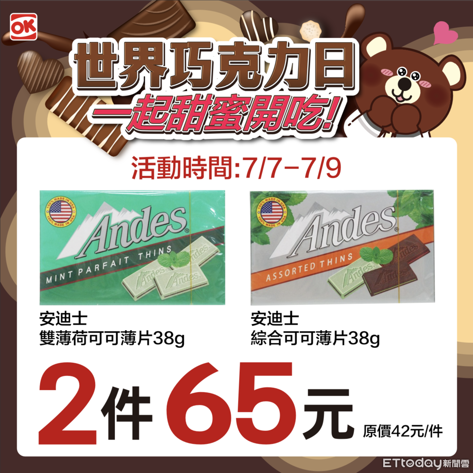 每年7月7日為「世界巧克力日」,OKmart推出OKCAFE「經典可可」,以濃郁可可香氣融合香醇牛奶,黃金比例調製出濃而不膩的口感,單杯只要55元。7-ELEVEN今起3天則推咖啡珍珠歐蕾、珍珠焙火烏龍任選買2送2;萊爾富有大杯同品項拿鐵買1送1。