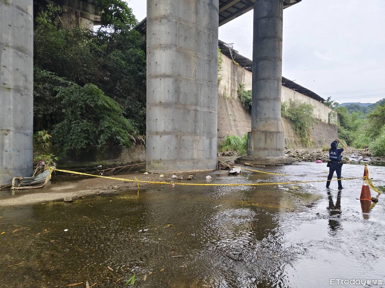 ▲汐止警方派員到女子墜落河床現場鑑識採證。(圖/記者張君豪翻攝)