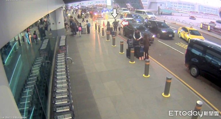 ▲3人抵達桃園機場第二航廈前,並下車交談。(圖/記者楊永盛翻攝)