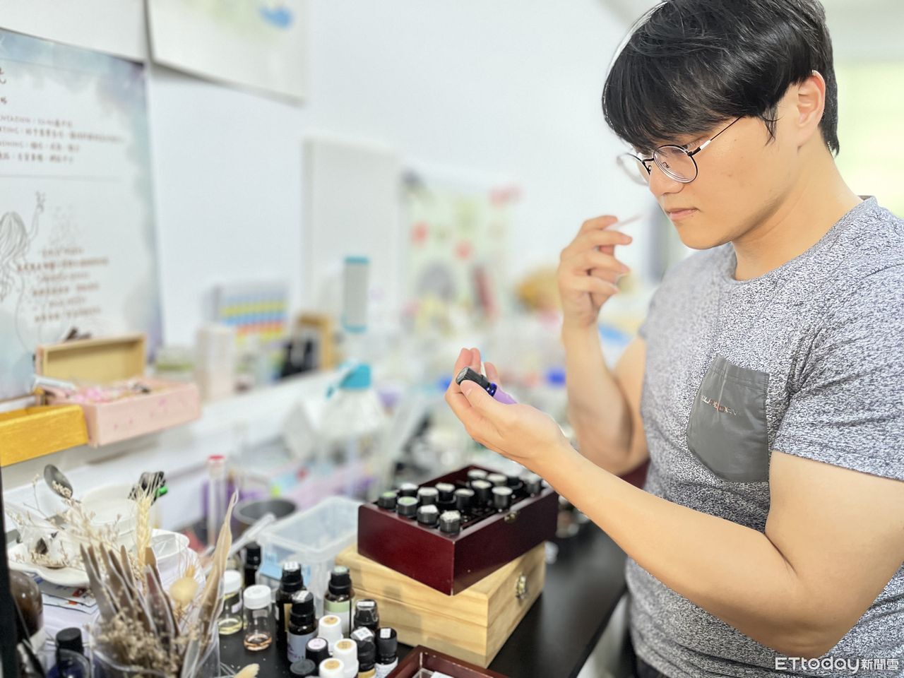 陳晁嘉表示,精油不只是香味,而是一種療癒的力量。無論是透過嗅吸還是按摩,都能達到身心靈放鬆的效果。他也提到,過去在資訊領域訓練出的邏輯與分析能力,讓他在調香學習過程中更具結構與思考力,這種跨領域整合正是未來產業所需。