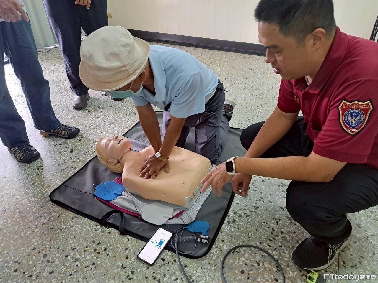 暑假來臨,觀光熱點人潮湧現,為強化第一線人員緊急應變能力,台南市消防局第二大隊官田分隊,9日特別前往烏山頭水庫辦理急救訓練課程,針對水庫工作人員進行CPR心肺復甦術、AED操作及創傷處置實作教學,提升突發狀況應對實力,守護市民與遊客的生命安全。