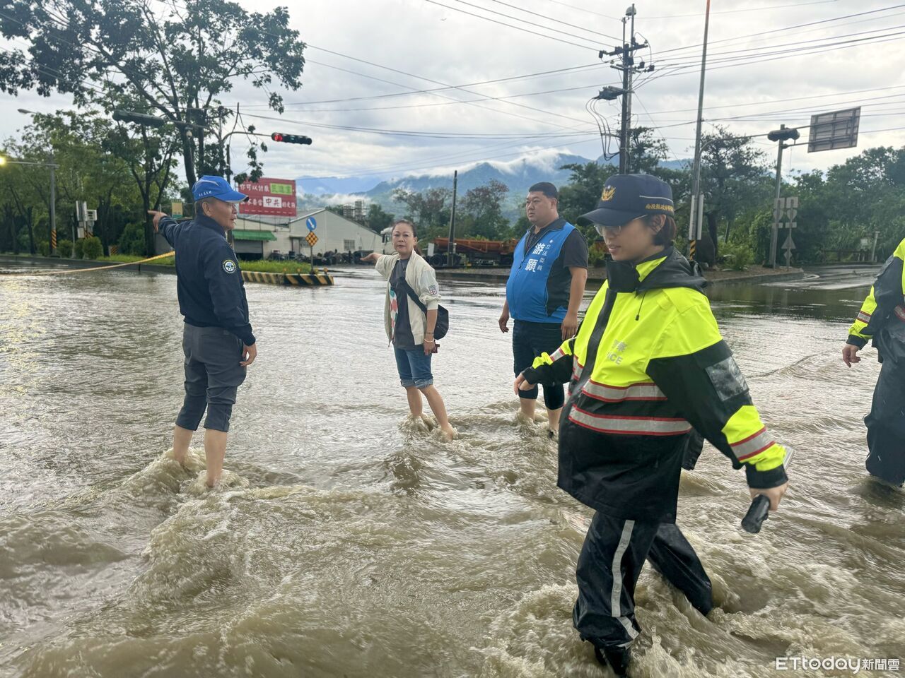▲台16線集集雙向淹水最深到膝蓋、導致封路,立委游顥親赴勘災。(圖/游顥辦公室提供,下同)