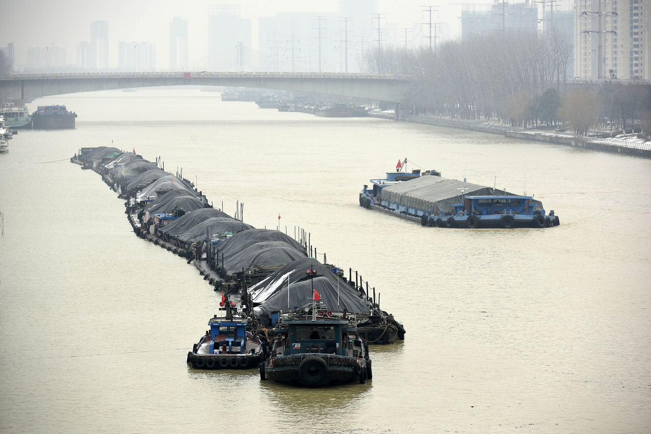 ▲ 京杭大運河上運煤船隊。(圖/CFP)