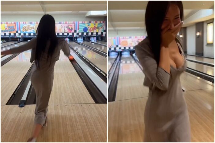 經常在X平台分享性感照片的日本網美ゆってぃ發布一段影片,身穿連身長裙的她擺出專業姿態投球,沒想到保齡球當場滑進水溝,讓她摀住臉龐快步返回座位。