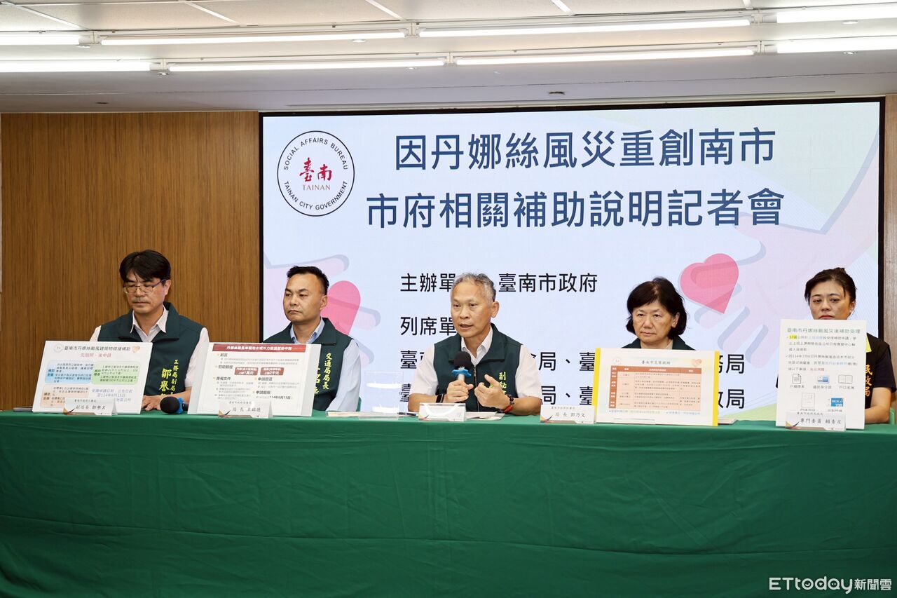 丹娜絲颱風重創台南多區,台南市政府10日公佈災損補助與慰助標準,針對因災造成的死亡、重傷、房屋與車輛損毀等六大類災損提供補助,自10日起至8月15日止,災民可備妥證明文件,向設籍地區的區公所提出申請,副秘書長尤天厚代表市長黃偉哲主持說明會,強調市府將秉持「從速從簡」原則,儘速協助民眾重建生活。