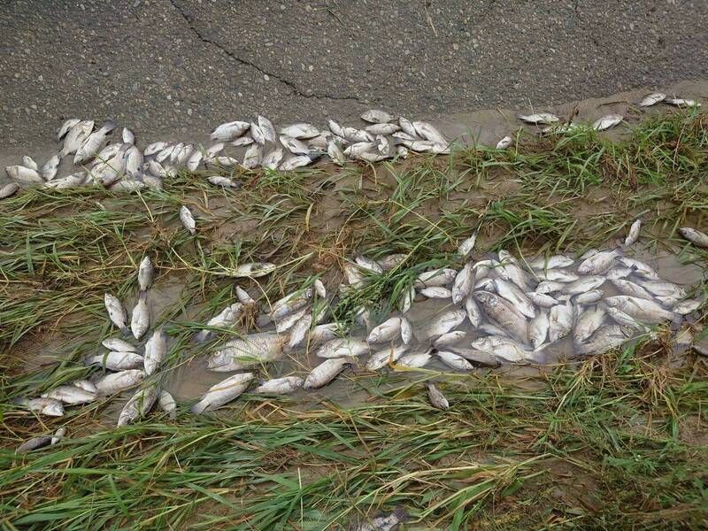 連日豪雨不僅造成農業損失,更重創生態環境!彰化八卦山一帶,包括花壇、大村、芬園三鄉出現大規模坍方,道路封閉,土石崩落情況嚴重。而今日(11日),貓羅溪畔再現驚人景象,超過3,000尾魚屍體散布岸邊,甚至連雨傘節等有毒蛇類也無法倖免,全數翻肚死亡,場面慘烈怵目。