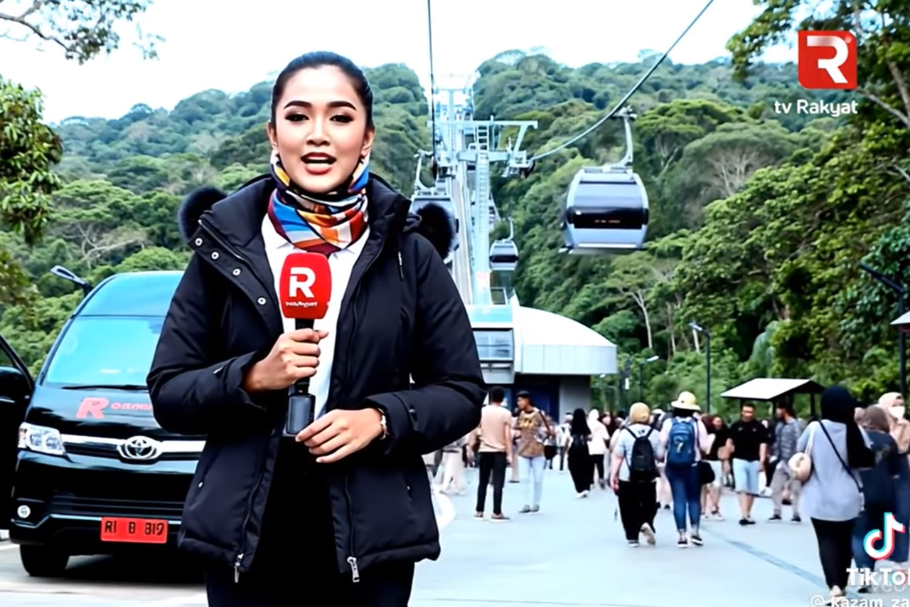 長達3分鐘的影片中,虛構的電視台「TV Rakyat」記者介紹所謂的「Kuak SkyRide」纜車,畫面顯示遊客排隊購票、纜車經過樹林和溪流上空,還有多組遊客受訪。但影片最後可見一名老婦人倒立時身體變形模糊,顯露出AI生成的破綻。