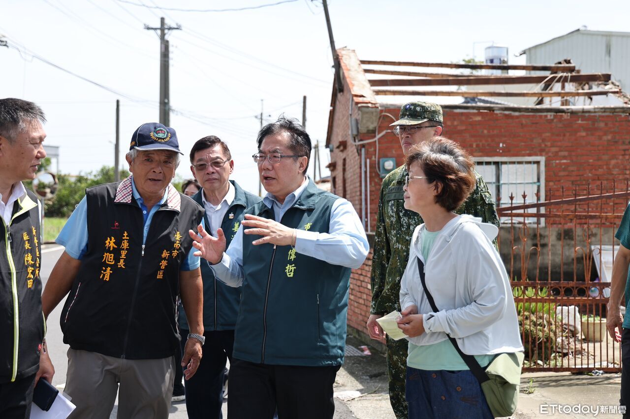丹娜絲颱風挾帶強風重創南台灣,台南市長黃偉哲12日上午深入新營、白河等重災區,與新營區長陳宏田、白河區長董麗華一同視察災情與災後復原進度,傾聽民意、了解基層所需,並強調市府將全力支援復原工作、協助災民儘速重建家園。