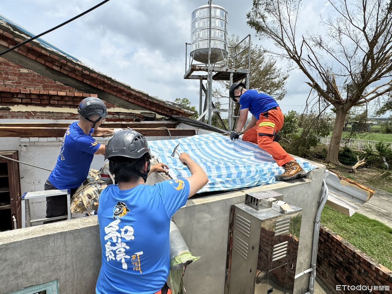 義消人員不畏酷暑、不懼危難,在高溫與惡劣環境中協助清除倒塌建物、搭設防雨帆布、搬運救援物資、安撫災民情緒,無聲但堅定地扛起守護鄉里的重責。他們的雙手不只是搬運工具,更是災後最溫暖的依靠,撐起的不只是殘破屋瓦,更是災民的重生勇氣。