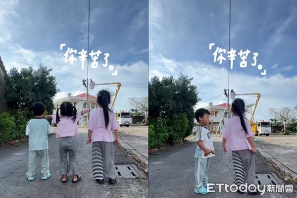 颱風丹娜絲重創台灣南部,許多地區停電,需要仰賴辛苦的台電人員搶修。對此,一名媽媽在社群軟體上傳了3名小孩加油、打氣的片段,可愛的畫面一經曝光,讓許多網友讚翻了。