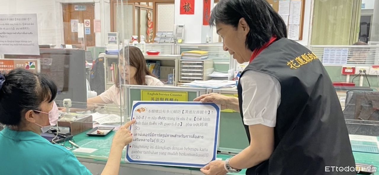 花蓮縣政府民政處表示,透過這套圖示設計,協助民眾與櫃檯必要時使用輔助溝通,不僅讓新住民感受第一線同仁服務溫暖,更能提升其洽公精準度、貼心便民與參與感最佳表現,持續傾聽多元聲音,擴展友善作法,打造真正具「溝通無礙、共融有愛」的洽公環境,利用多元語言圖文並茂, 打造共融美好社會。